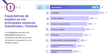 En la última edición de la Encuesta de Expectativas de Empleo de ManpowerGroup Panamá, más de 200 empleadores a nivel nacional reportaron una tendencia neta de empleo ajustada estacionalmente de 44%. Dicha expectativa aumentó 27 p.p en comparación al trimestre anterior y 24 p.p con respecto al mismo período del año pasado.